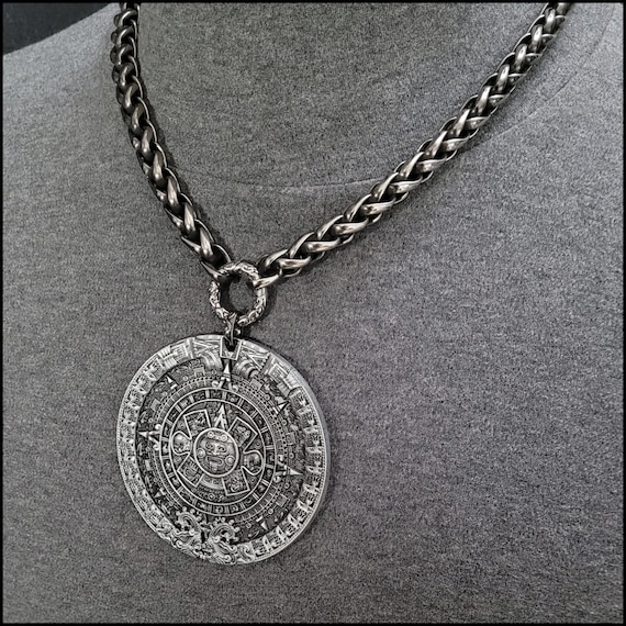 Men #39 s aztec CALENDAR Medallion Necklace Etsy