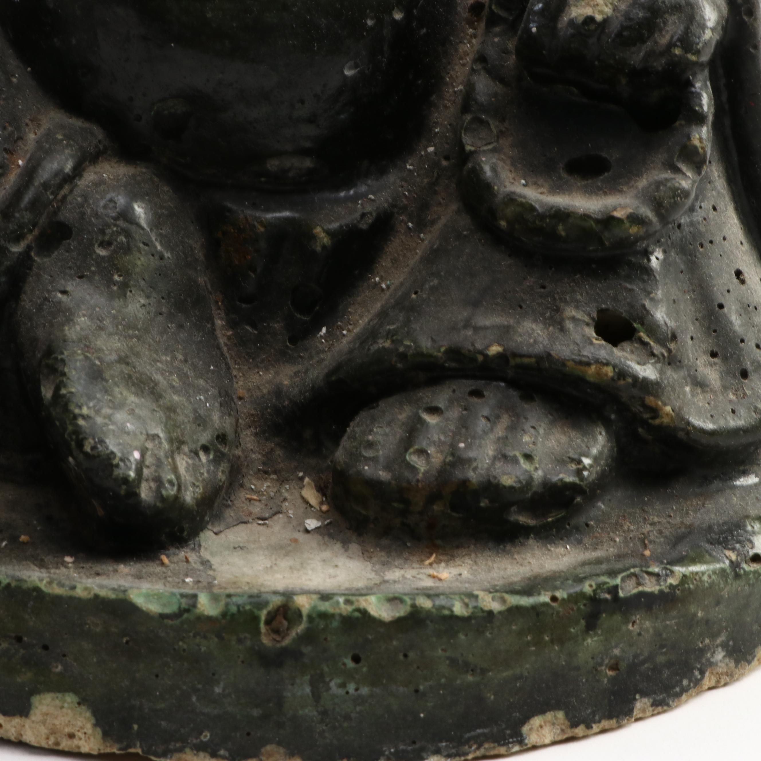Laughing Buddha Aztec Calendar Medallion and Guardian Lion Statue