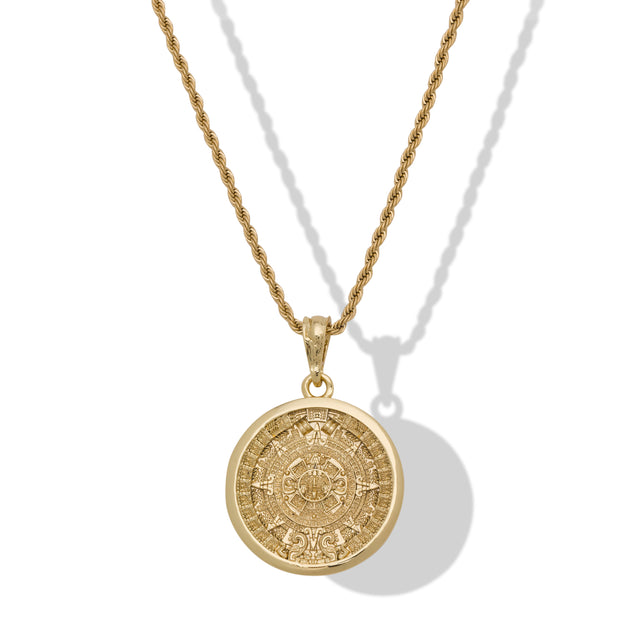 14K Solid Gold Aztec Calendar Pendant Mayan Gold Jewelry Perpetual