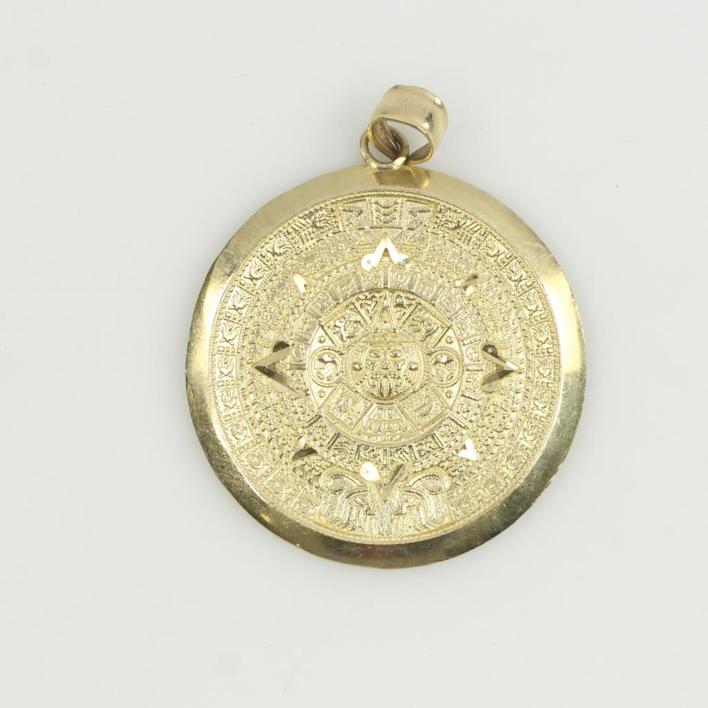 14K 1 3 quot AZTEC CALENDAR PENDANT