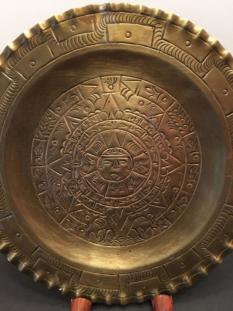 Mayan Calendar Plate Aztec Brass Mexico on Back Man Etsy