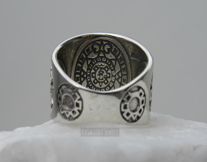 Big Aztec calendar ring handmade aztec calendar solid silver Etsy