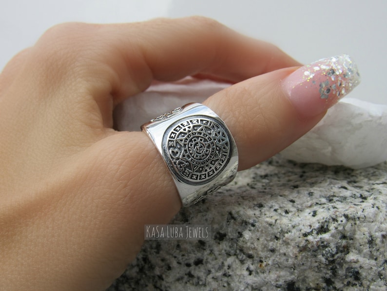 Big Aztec Calendar Ring Handmade Aztec Calendar Solid Silver Etsy