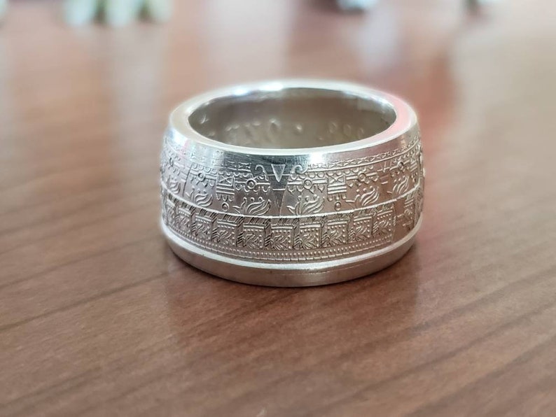 Silver Aztec Calendar Ring Silver Coin Ring Silver Mexican Etsy