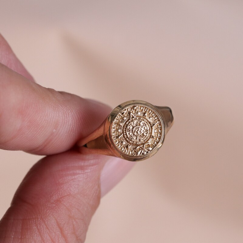 14k Aztec Calendar Ring in 3 Different Sizes for Men and Women Etsy