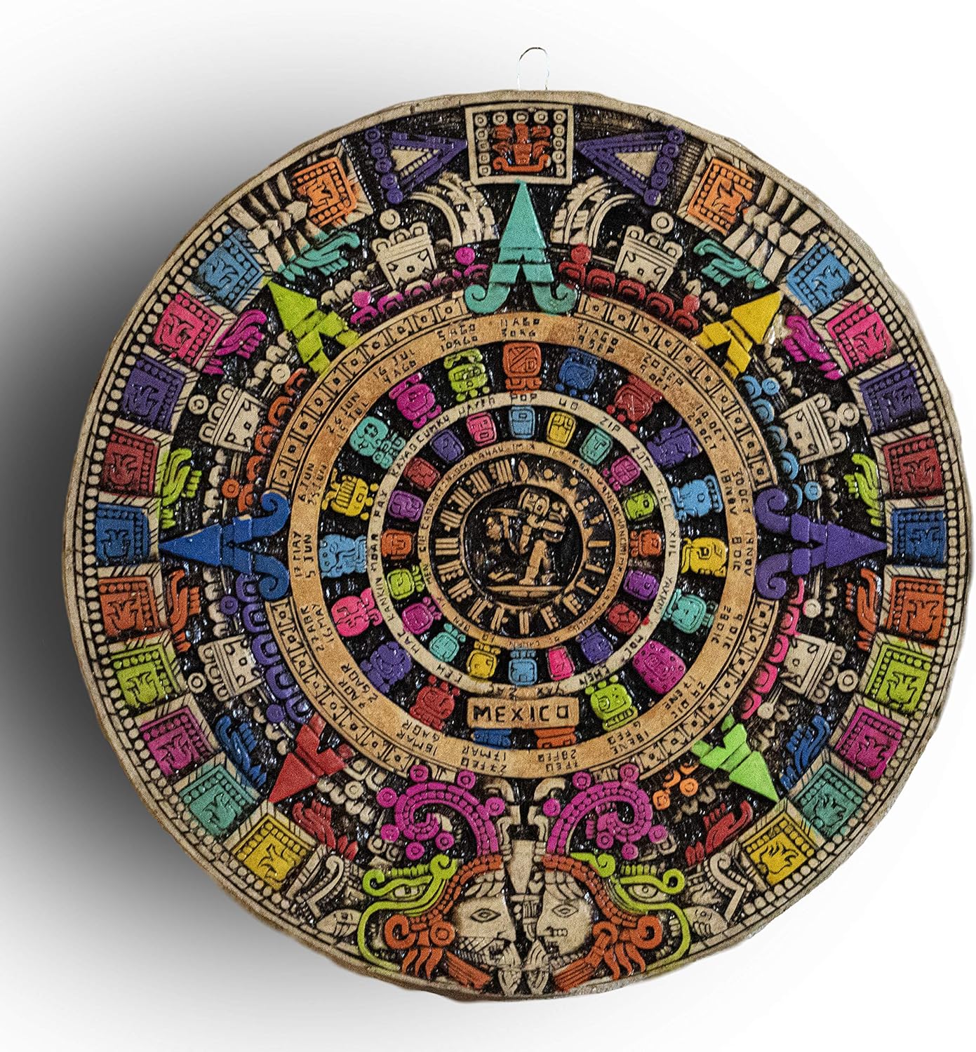 Large Aztec Calendar Wall Art Wood Laminate Painted Mexika Culture