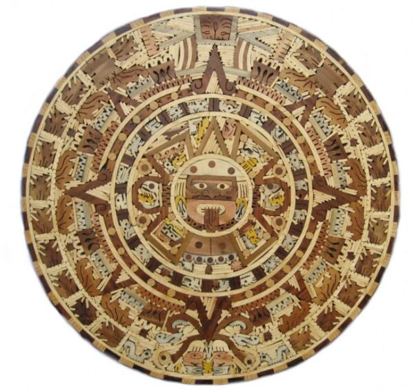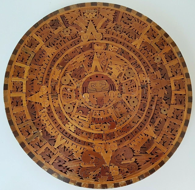Aztec Calendar Wood Marquetry For Sale at 1stDibs
