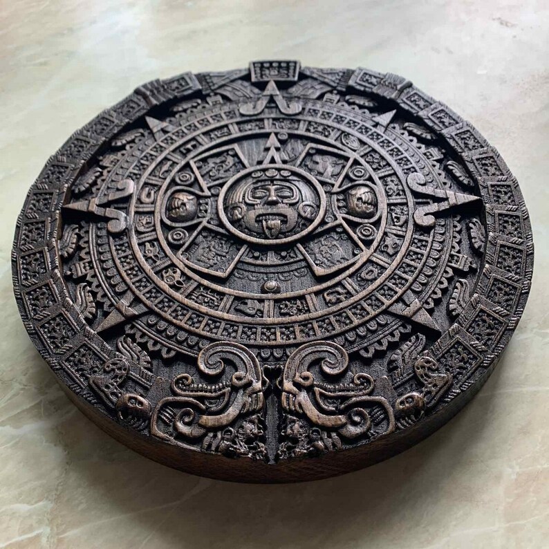 15 Aztec Calendar Wood Carving Plaque Home Decor CNC Ancient Wall Decor