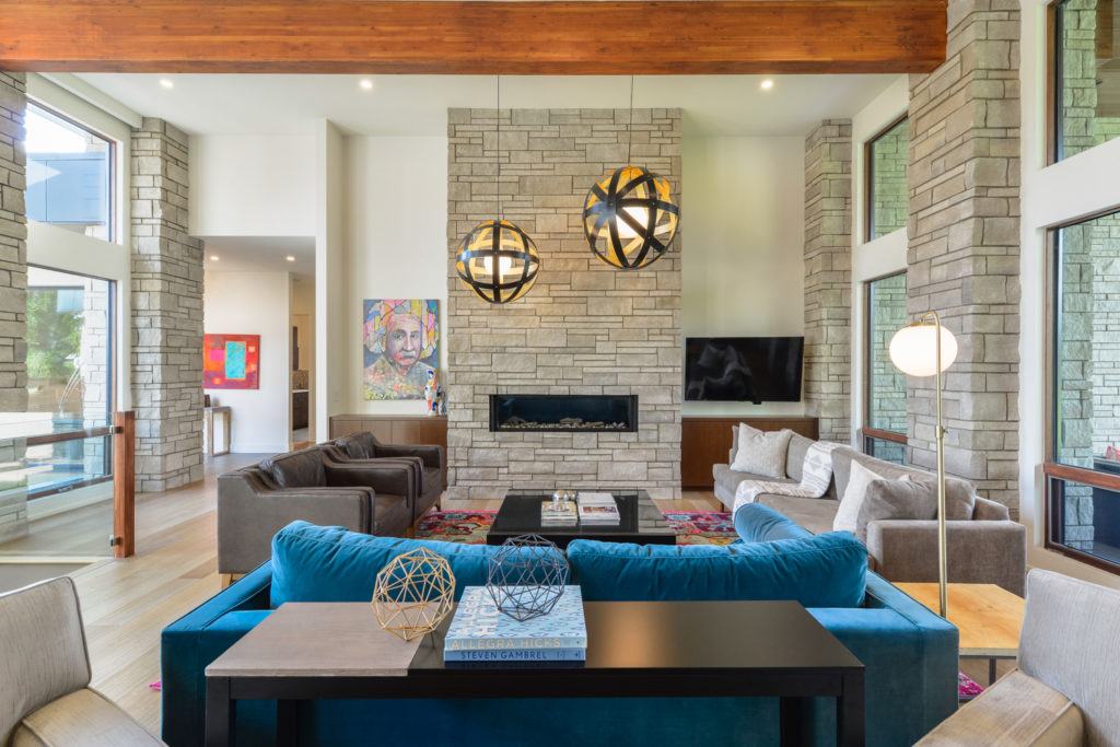 Modern Living Space Linear Stone Fireplace K2 Stone