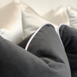 Luxury Grey Velvet With White Piping High Quality Modern Handmade