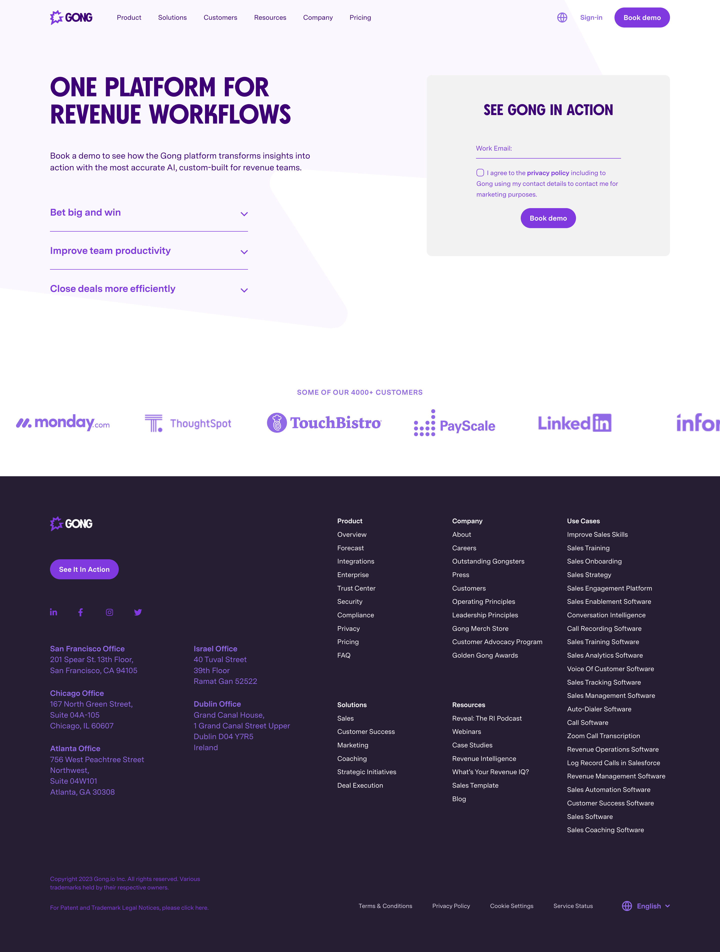 Gong Demo: Website Inspiration für SaaS Marketer Designer