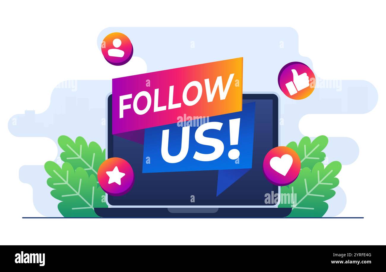 Follow us concept flat illustration vector template Megaphone on