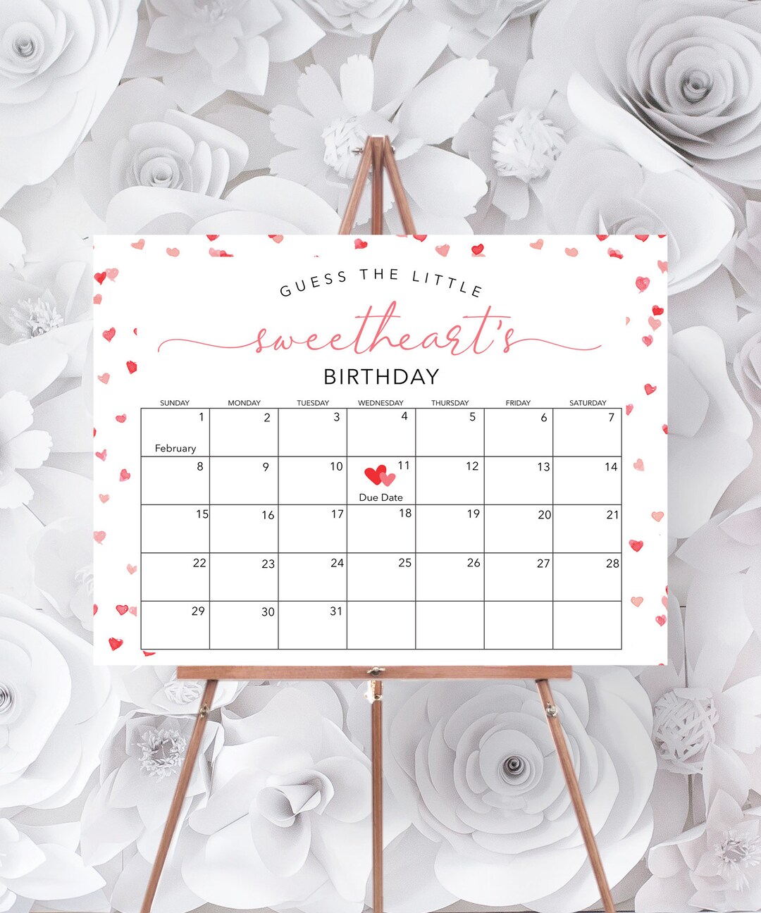 Baby Due Date Calendar Sign Template Guess the Birthday Baby Shower