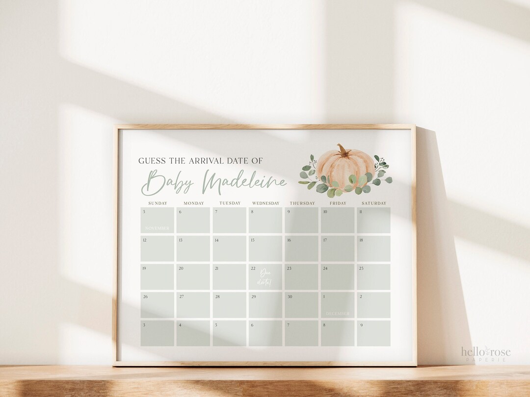 Editable Baby Due Date Calendar Printable Game Guess the Arrival