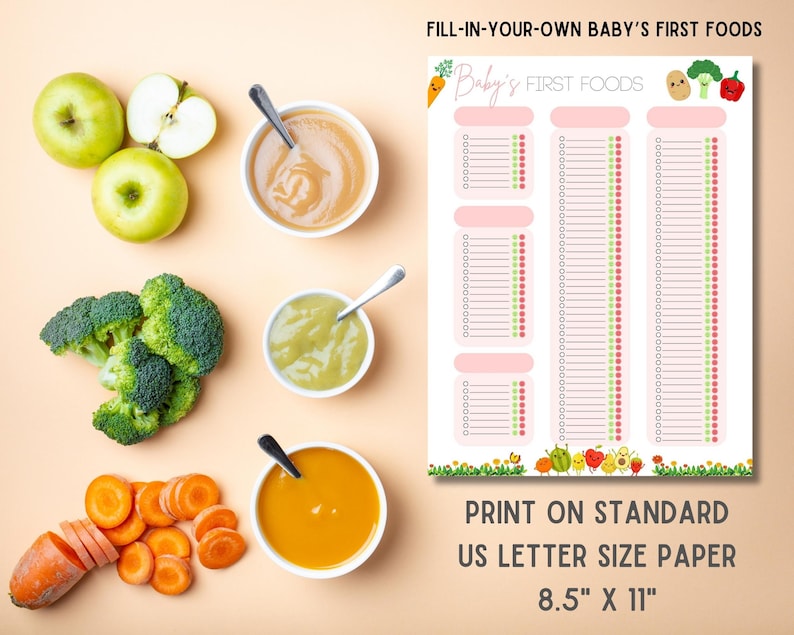 Baby #39 s First Foods Checklist Printable Instant Download Baby Food Log