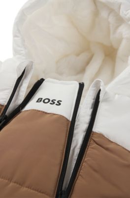 BOSS Vinteroverall för baby med foder i pälsimitation och loggor Brun