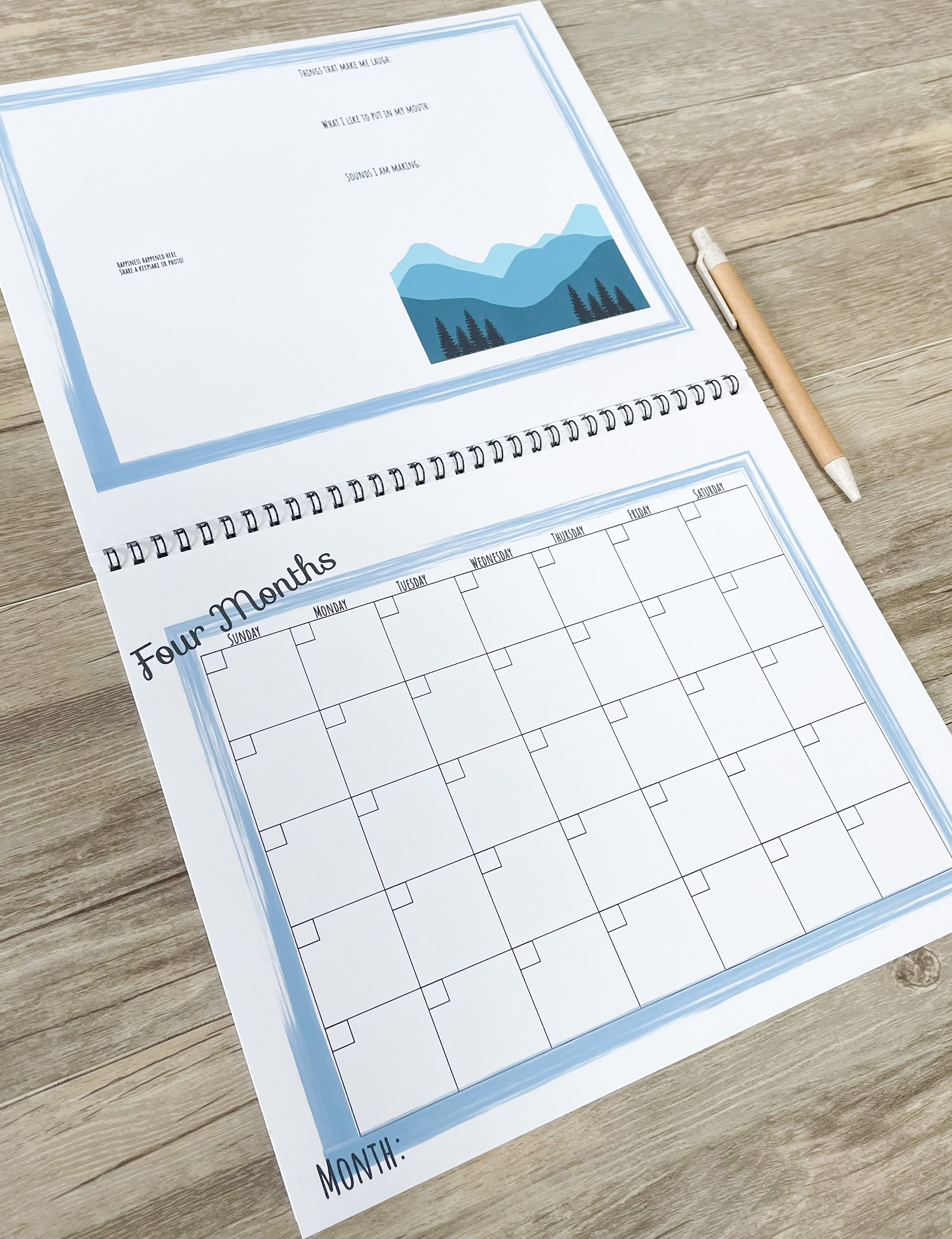 BLUE Printable Baby Milestone Calendar PDF • Baby Memory Book • Track