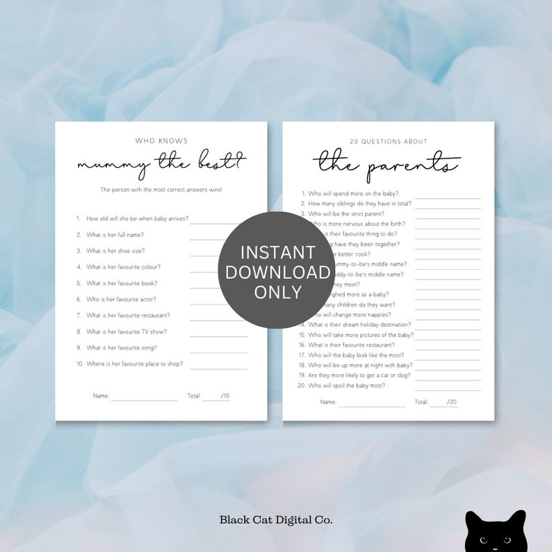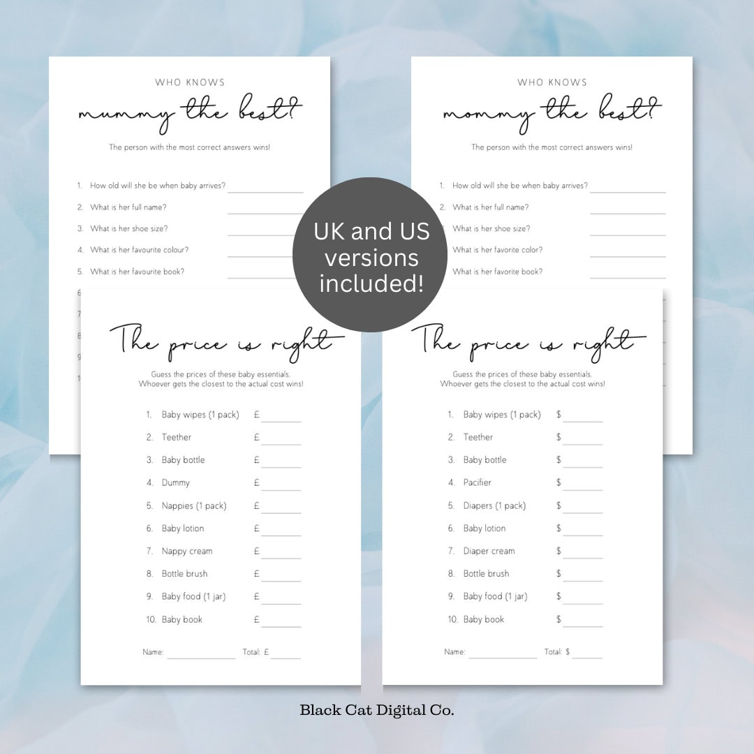 Printable Baby Shower Games Pack: Fun Minimalist Party Games (PDF) Etsy