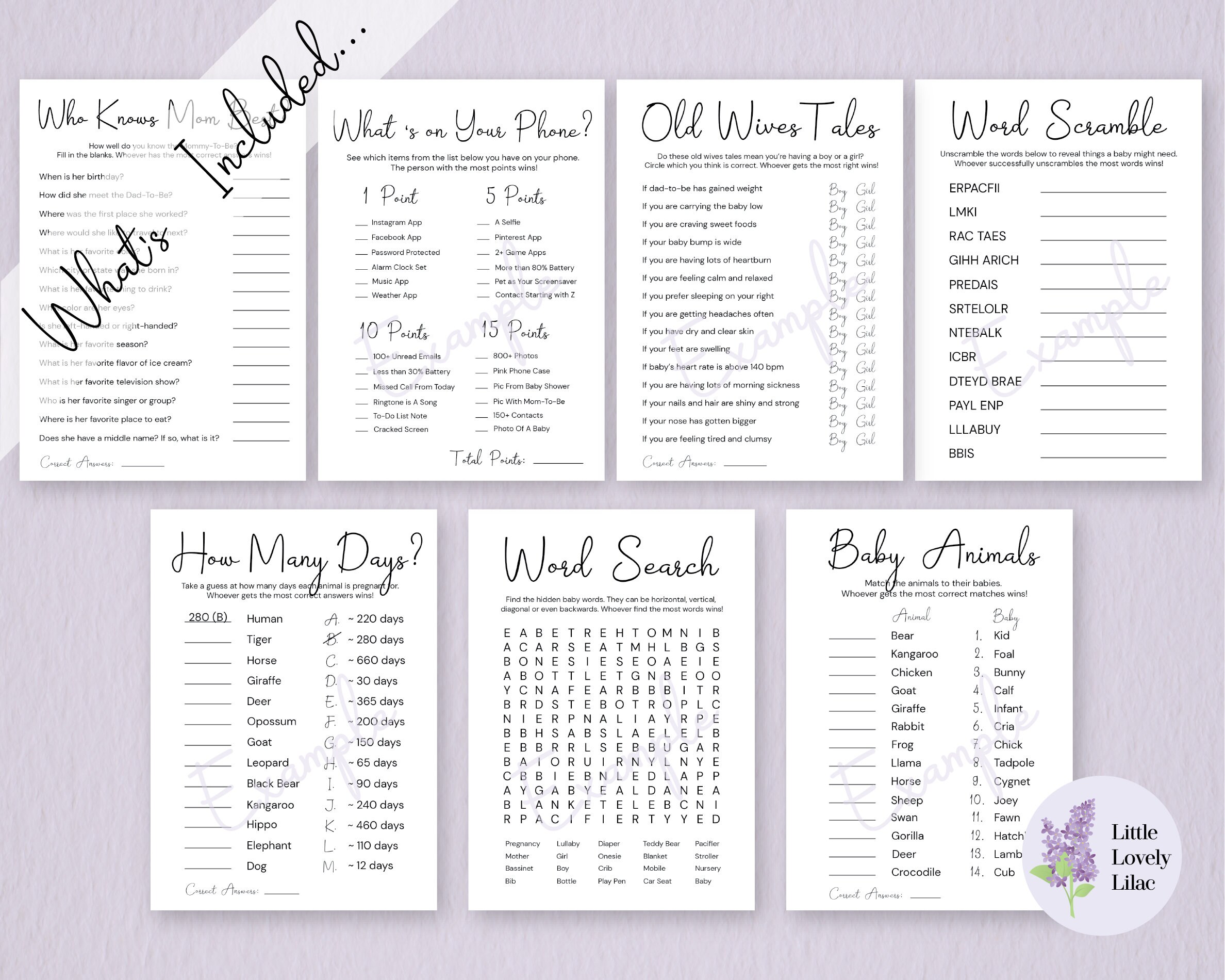Baby Shower Games Printable Sheets Party Games Easy Unique Etsy