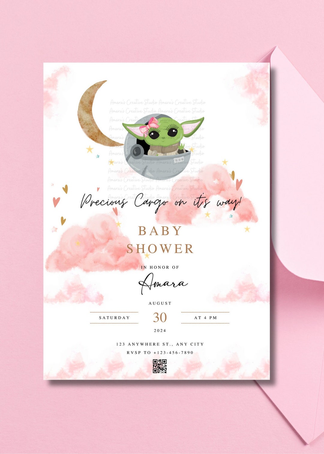 Baby Yoda Girl Baby Shower Invitation Star Wars Party Mandalorian