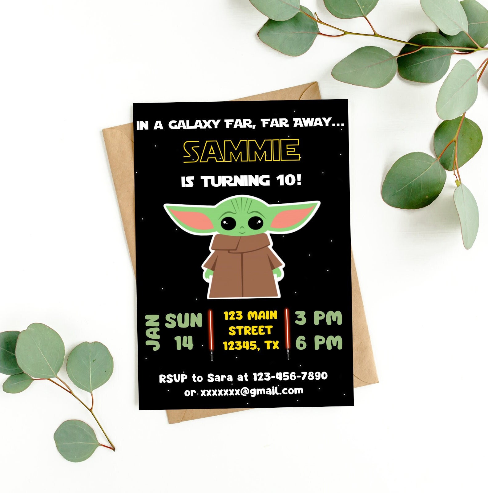 Baby Yoda Birthday Invitations Grogu Birthday Star Wars Etsy