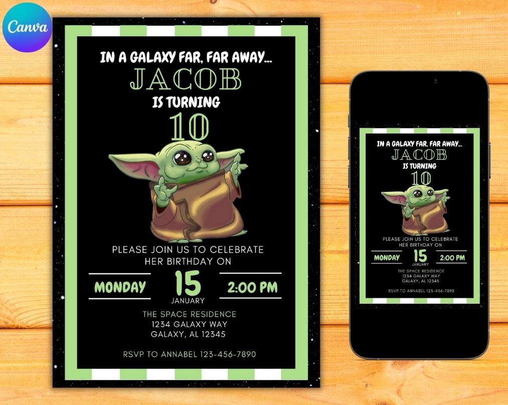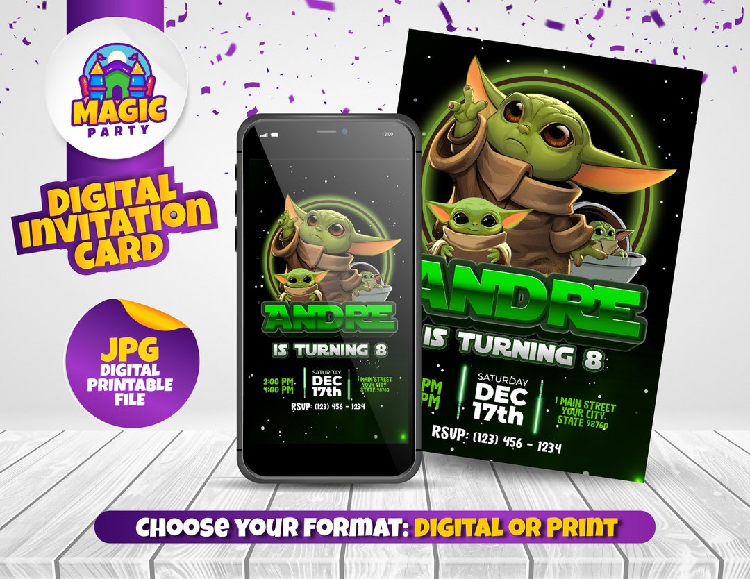 Invitación baby yoda Yoda party Star wars themed birthday party