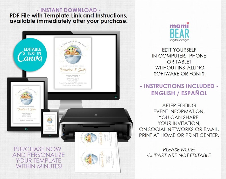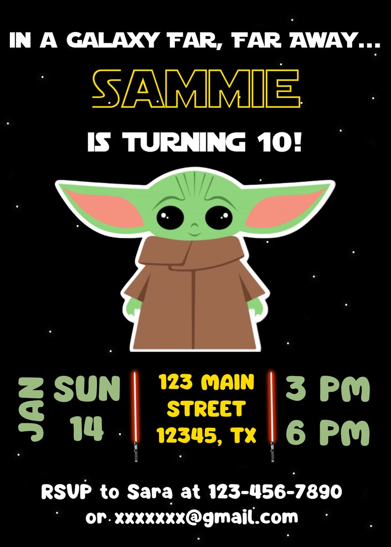 FREE Baby Yoda Invitation Editable and Customizable WHATSAPP iMESSAGE