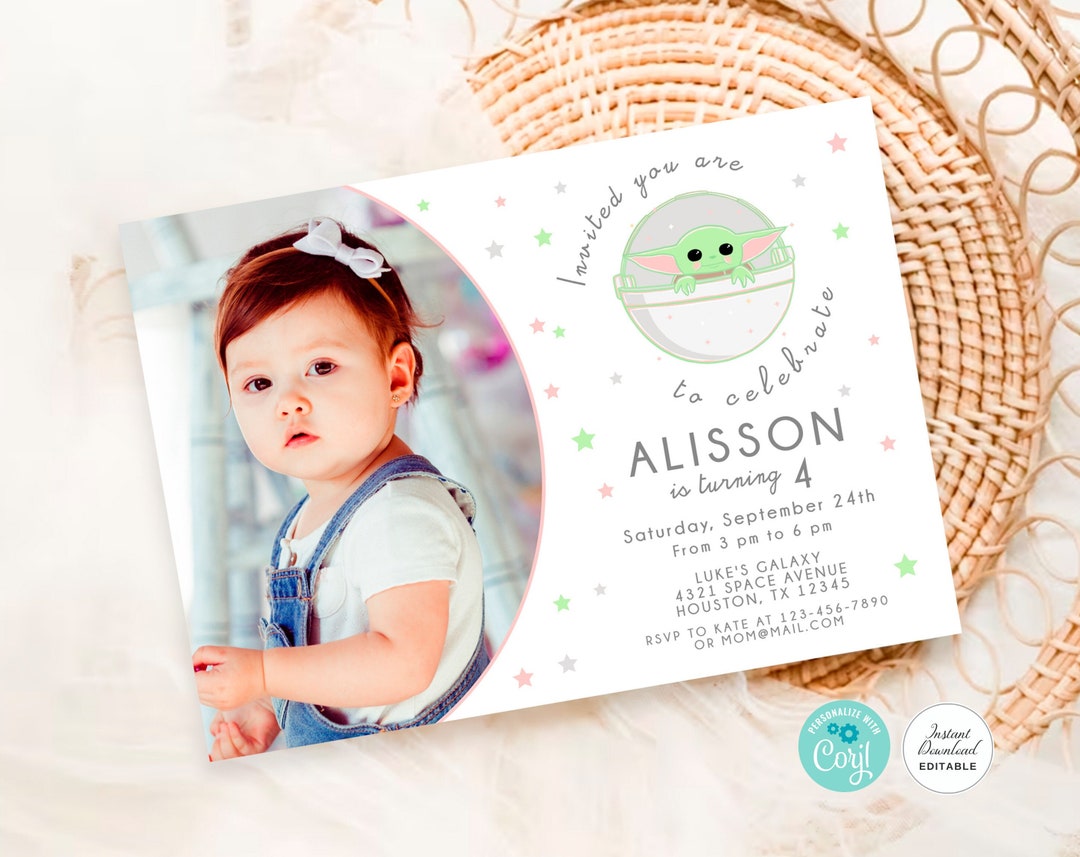 Editable Baby Yoda Photo Invitation Baby Yoda Birthday Invitation