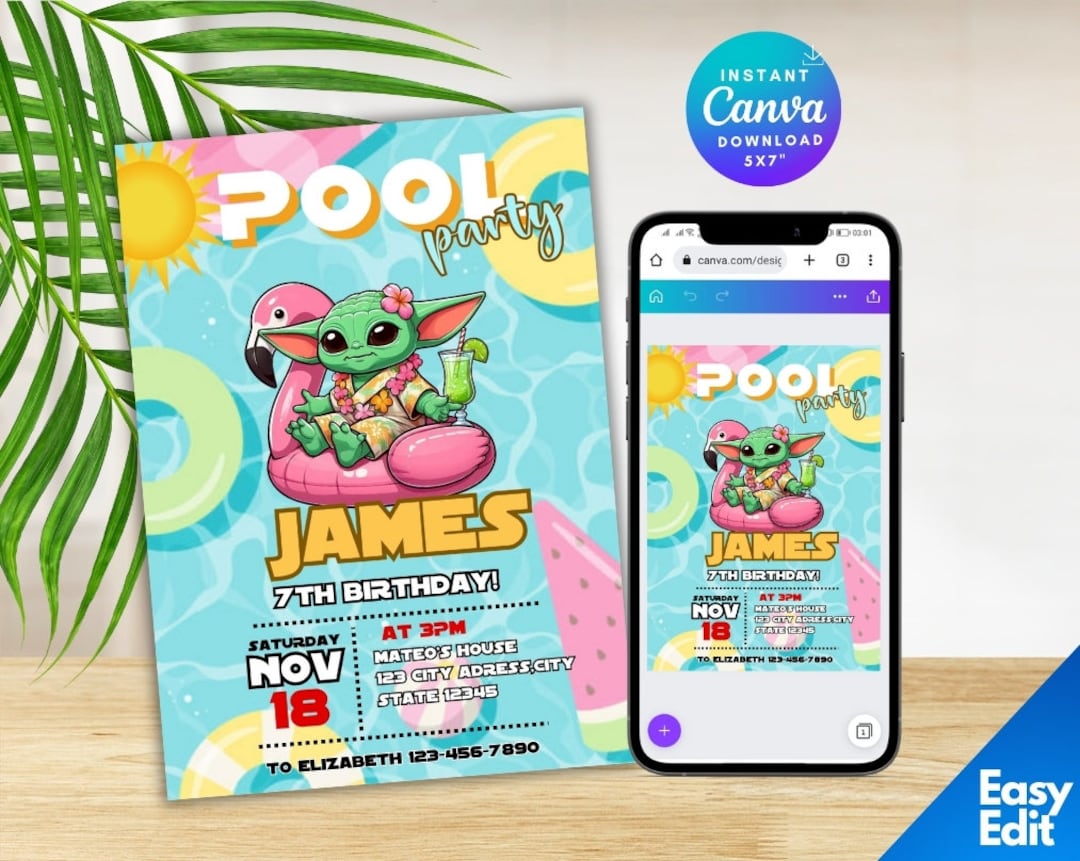Baby Yoda Invitation Baby Yoda Pool Party Baby Yoda Invite Editable
