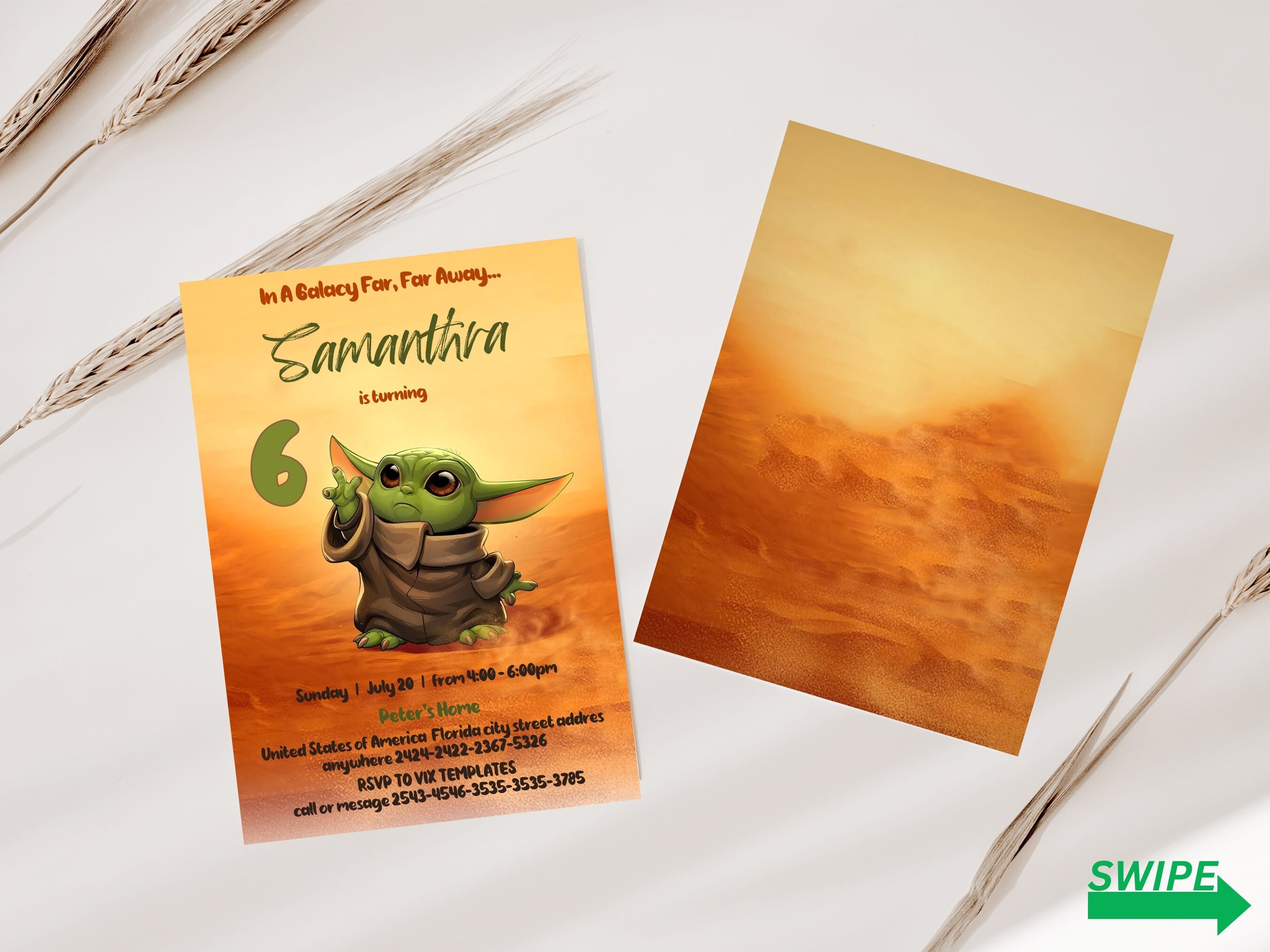 Editable Baby Yoda Birthday Invitation ANY AGE Baby Yoda Invitation