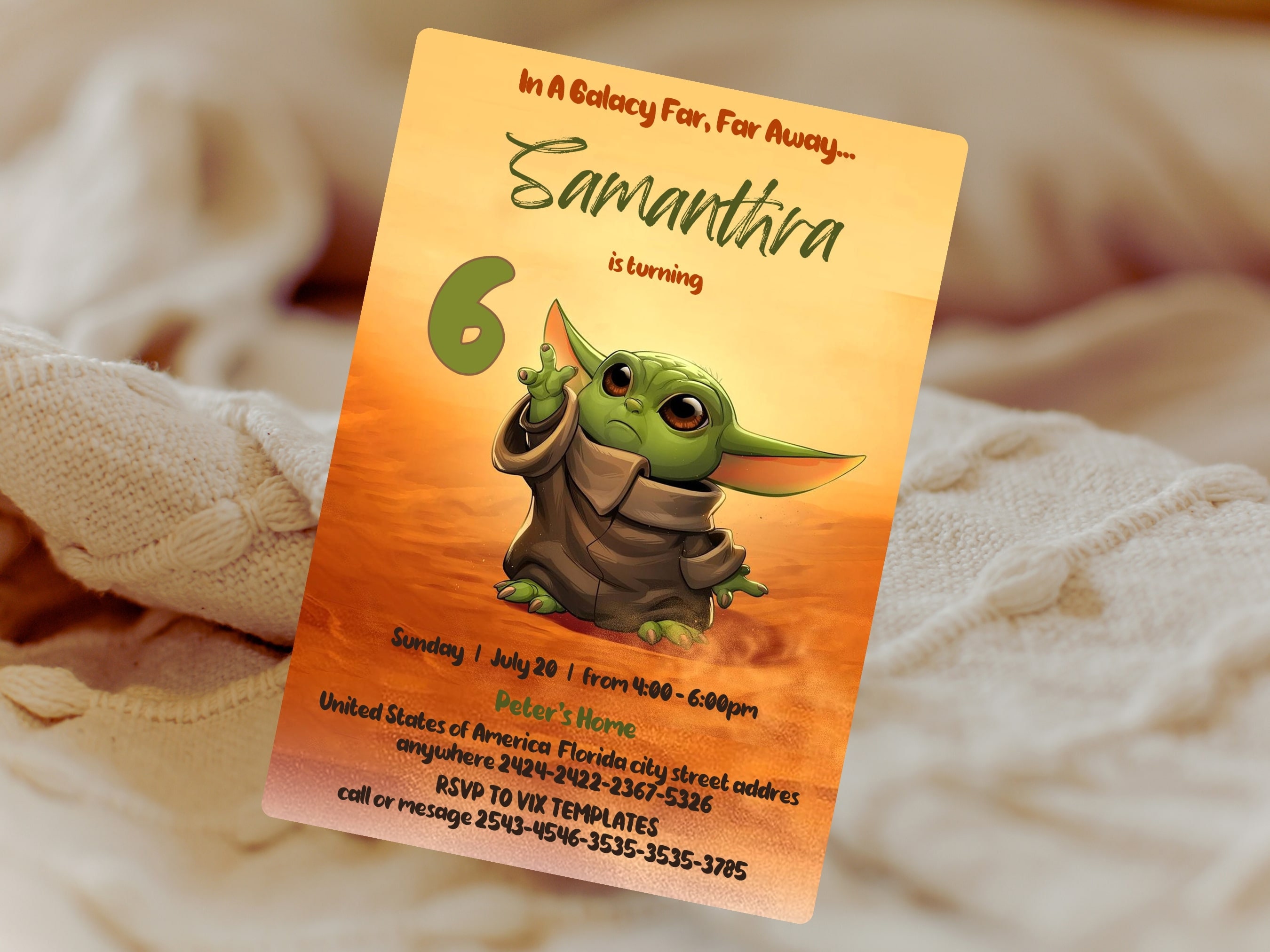 Editable Yoda Invitation Baby Yoda Birthday Party Invite Digital Yoda