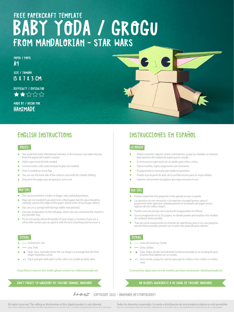 Free Papercraft Template Mandalorian Baby Yoda Star Wars Grogu Hanzmade