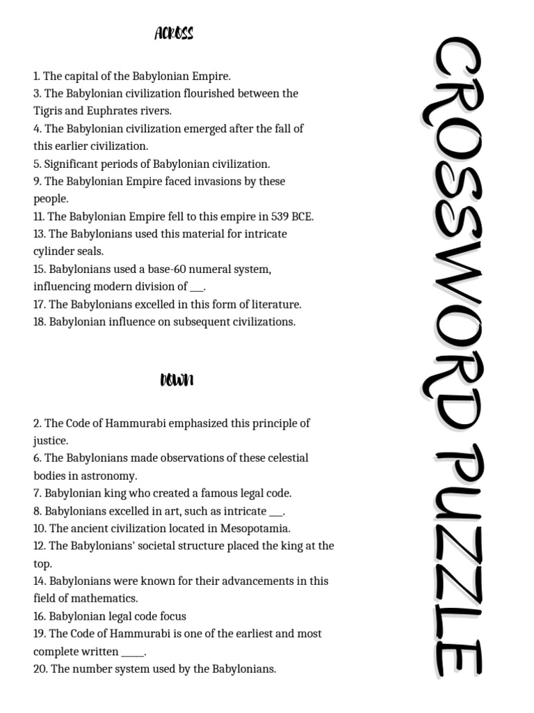 Babylonian Empire Crossword Puzzle PDF