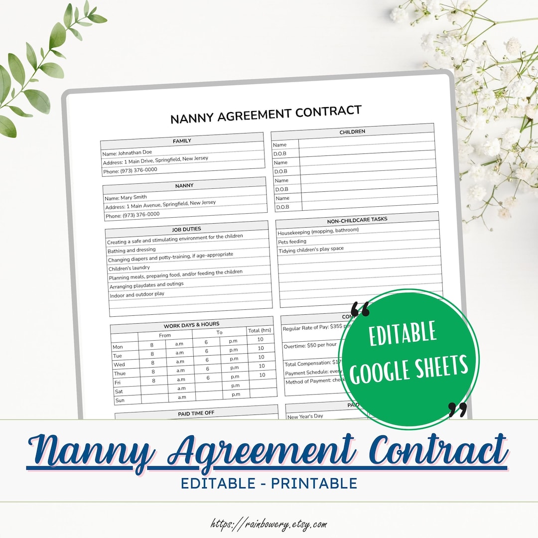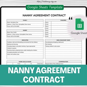 Nanny Agreement Contract Editable Google Sheets Nanny Contract