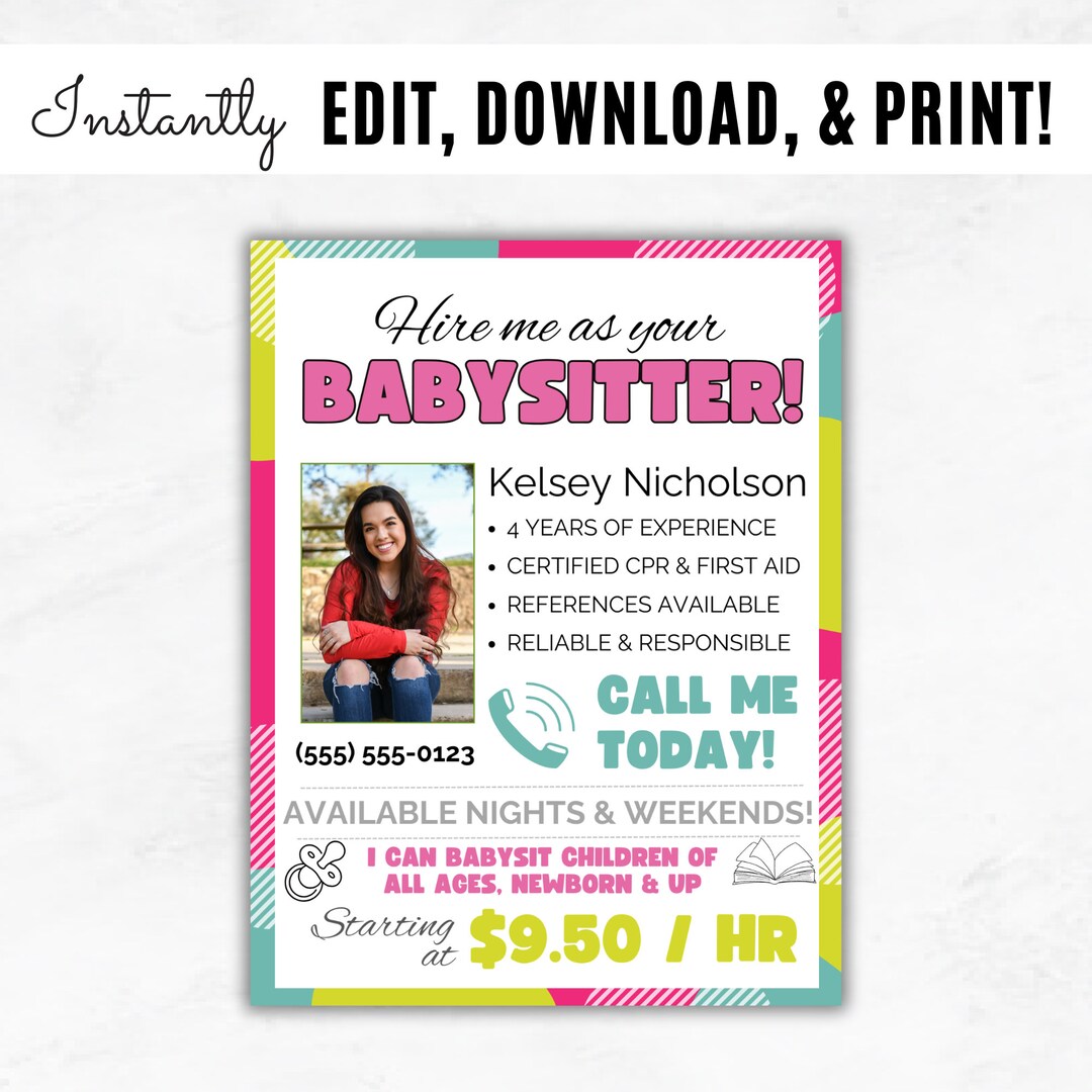 Babysitter Flyer Template Editable Babysitting Services Etsy