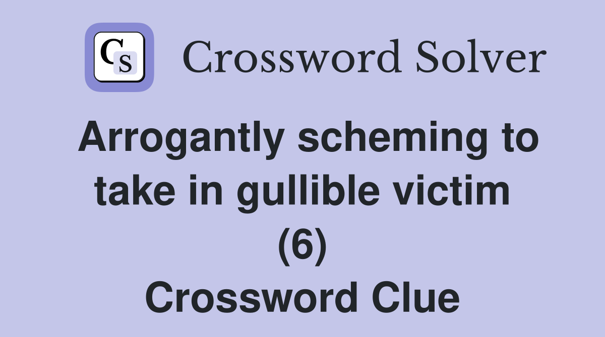Arrogantly scheming to take in gullible victim (6) Crossword Clue