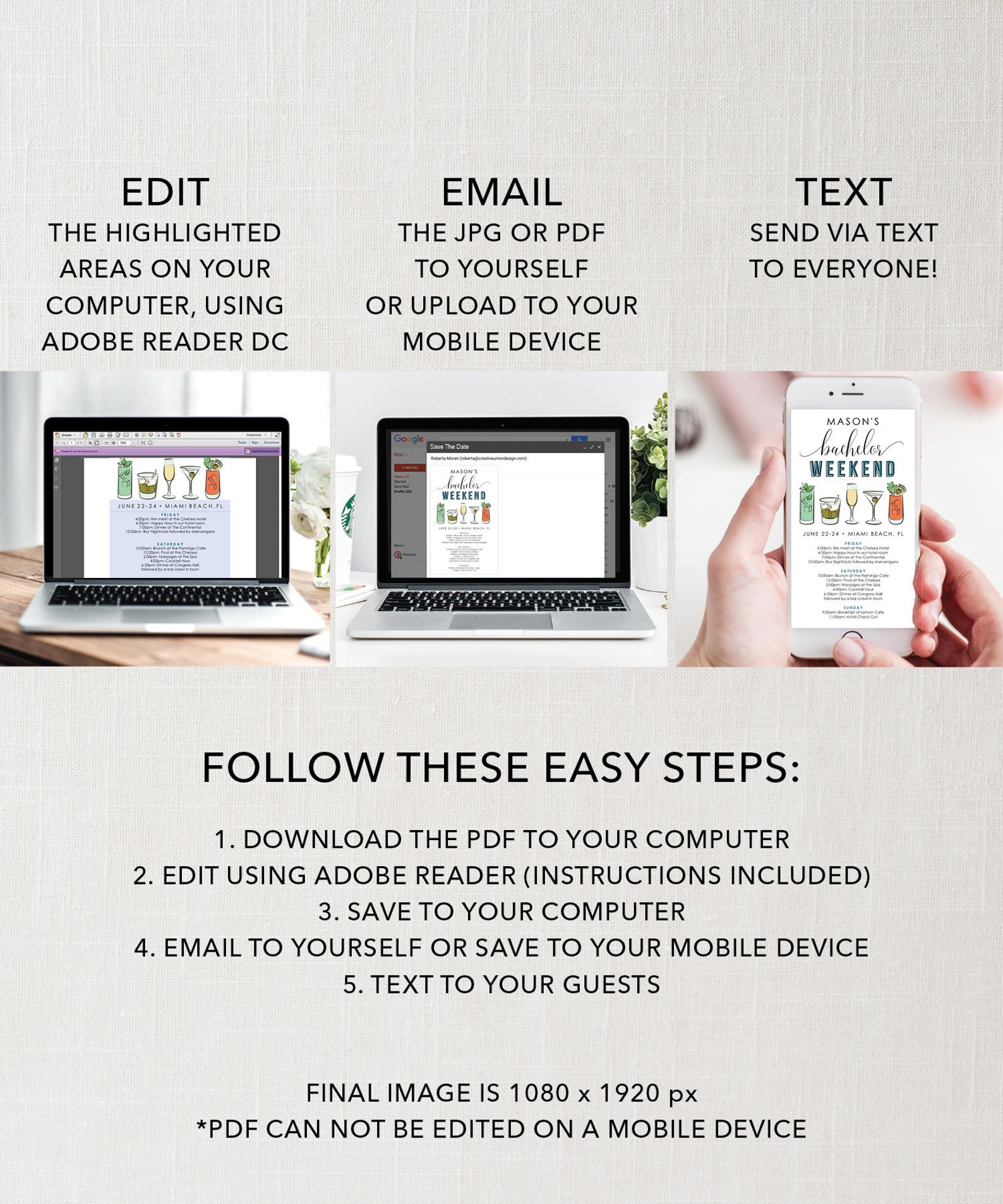 Bachelor Party Itinerary Template Digital Schedule Instant Download