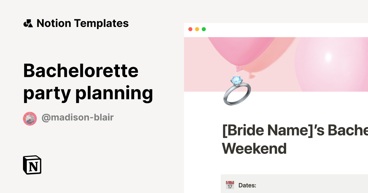 Bachelorette party planning Template by Madison Blair Notion Marketplace