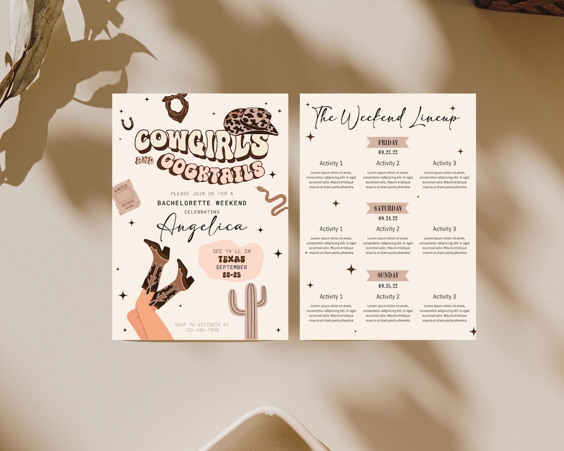 Cowgirls Cocktails Bachelorette Invitation and Schedule Western