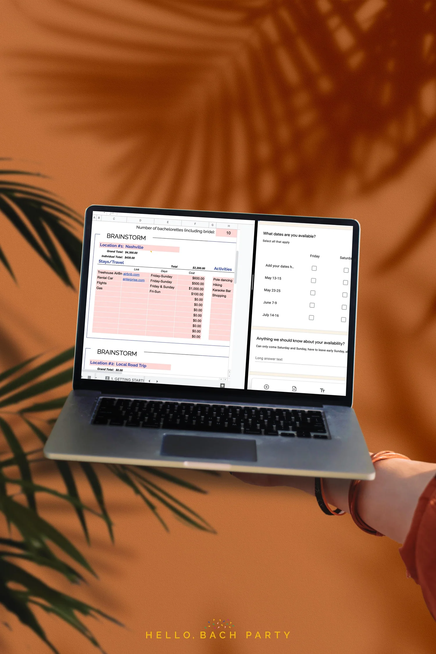 Bachelorette Planning Spreadsheet Template Hello Bach Party