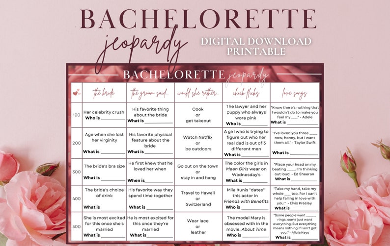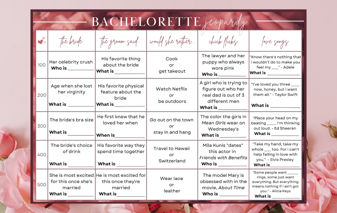 Bachelorette Jeopardy Printable Bachelorette Jeopardy Game Etsy