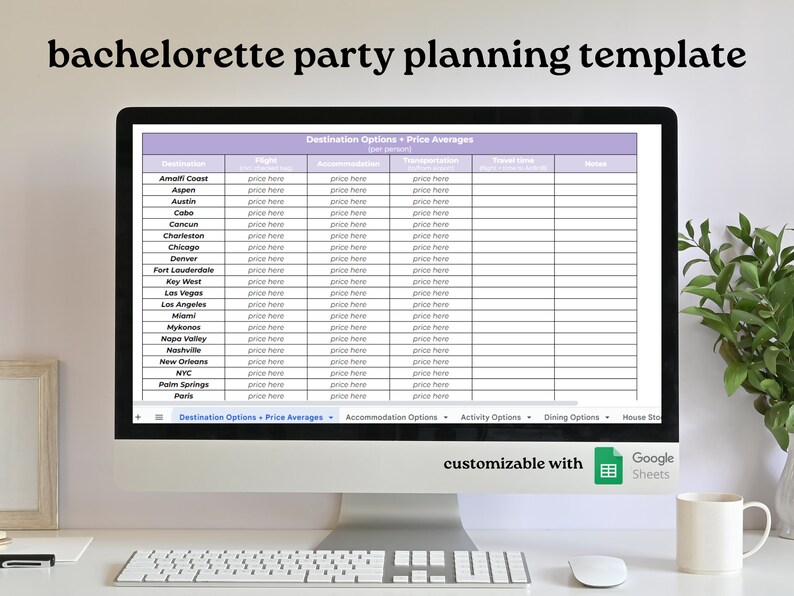 Bachelorette Party Planning Spreadsheet Bachelorette Trip Planner