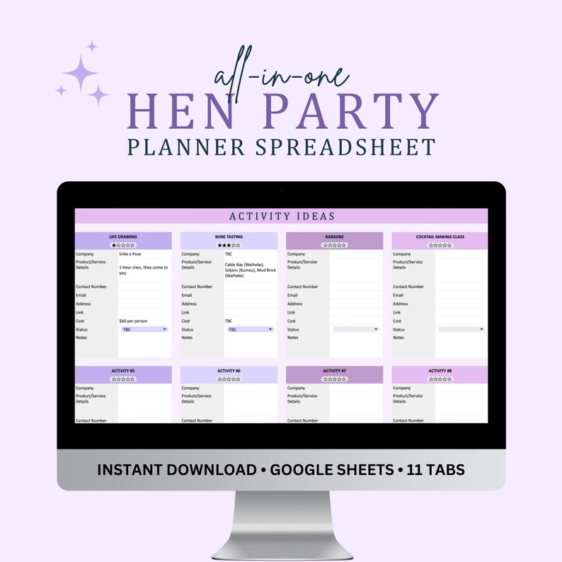 All in one Hen Party Planner Spreadsheet Bachelorette Party Planner
