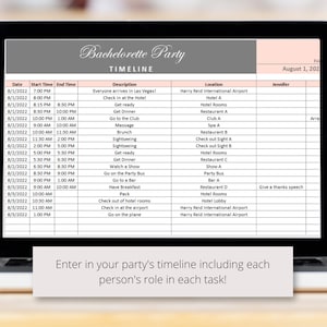Bachelorette Party Timeline and Details Itinerary Template Etsy