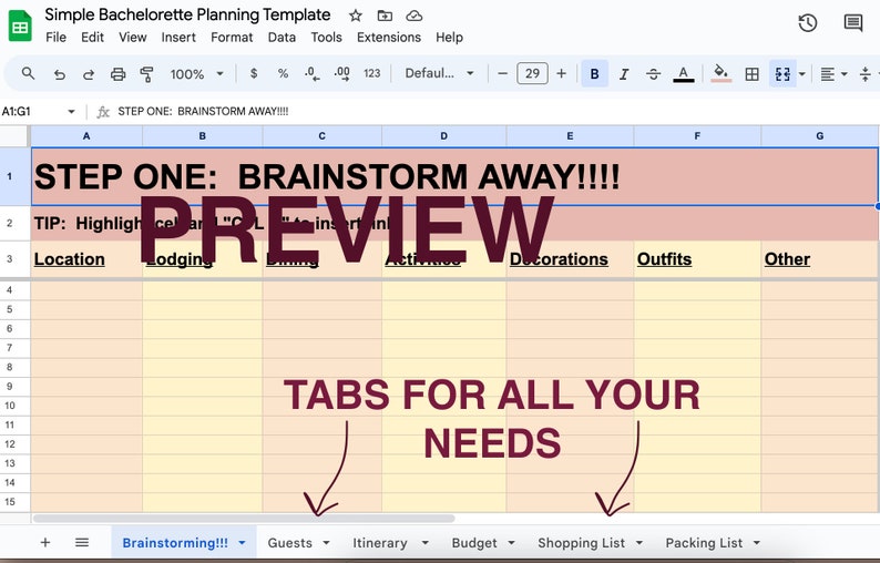 Bachelorette Party Planner Spreadsheet Bachelorette Planner Google