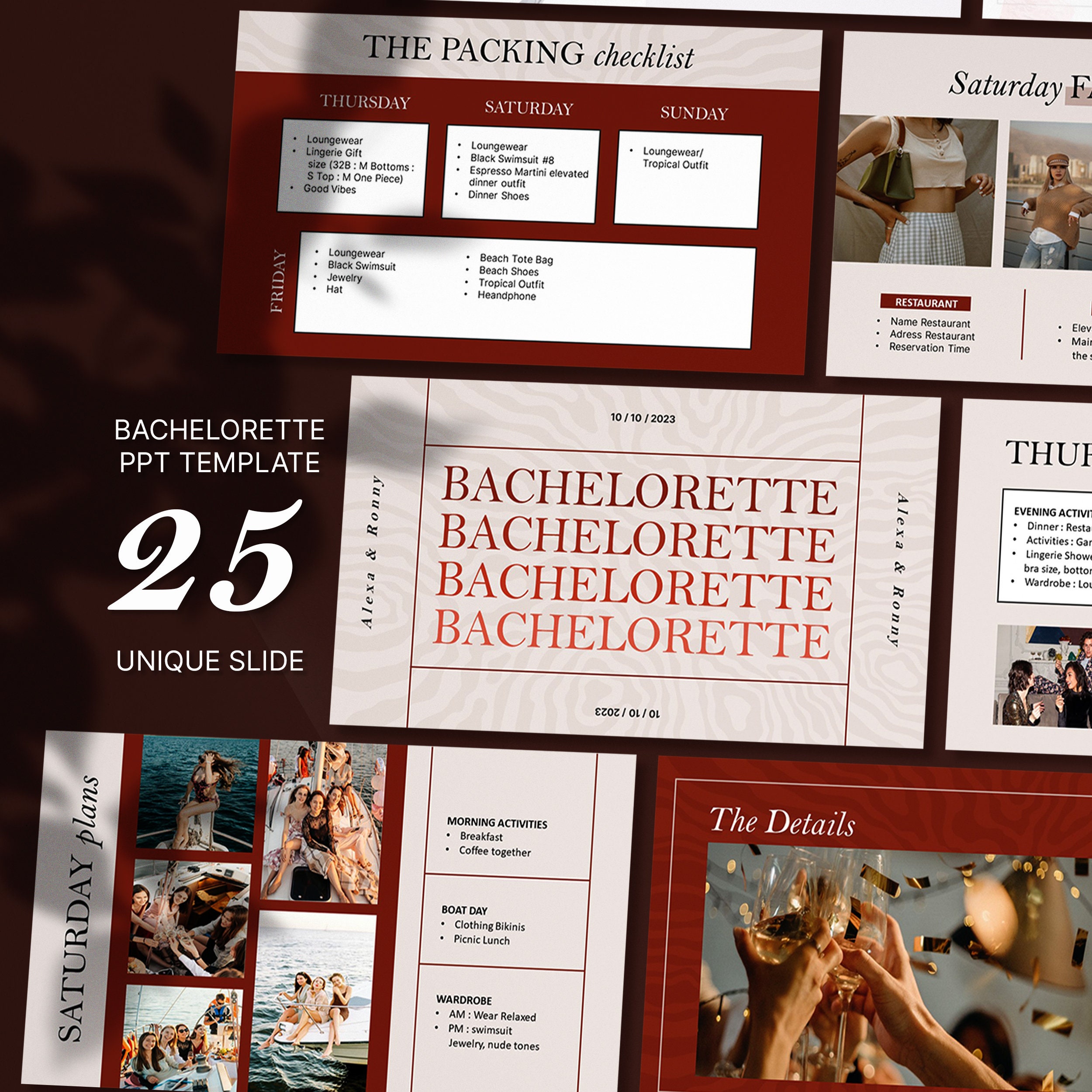 Bachelorette Powerpoint Template ANY Theme Powerpoint Itinerary