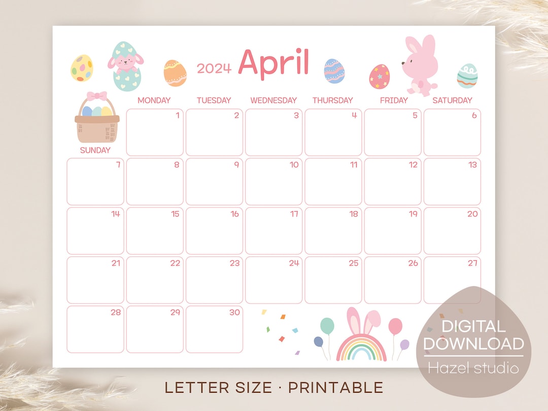 Printable April 2024 Calendar Etsy