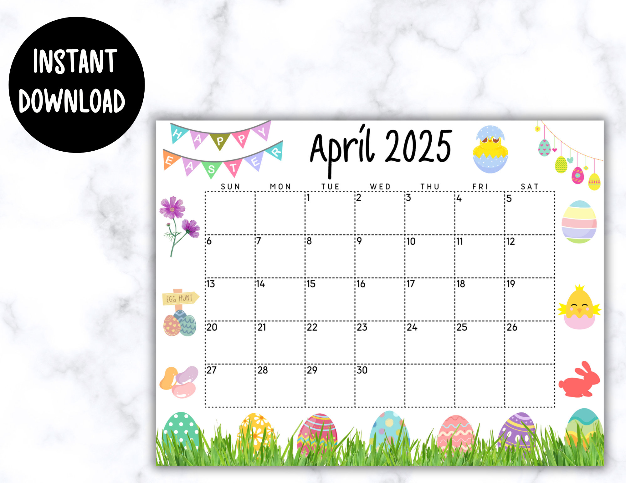 EDITABLE April 2025 Calendar Fillable Calendar W/ Colorful Easter Egg