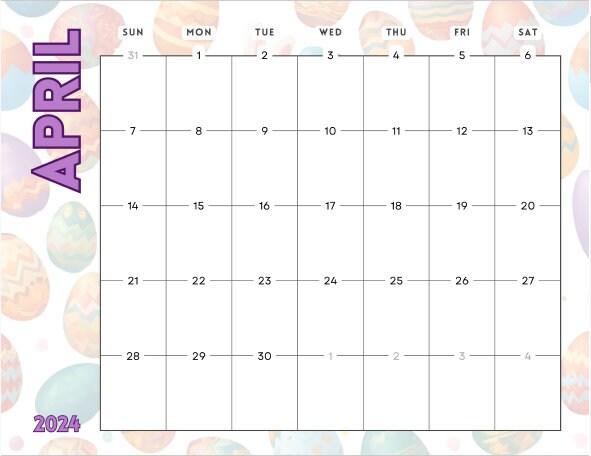 EDITABLE April 2024 Calendar Printable Cute Purple Easter Calendar for