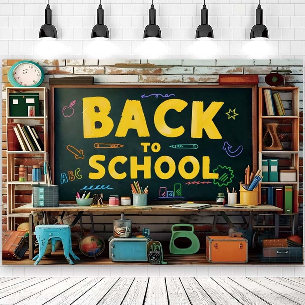 Back to School Backdrop for Photography Black Chalkboard Globe Book